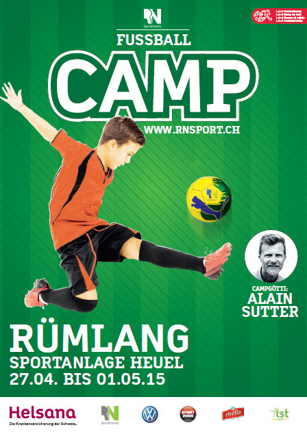 Während den Frühlingsferien vom Montag, 27.04. bis und mit Freitag, 01.05.2015 findet auf den Fussballplätzen Heuel in Rümlang ein Junioren-Fussballcamp statt.
