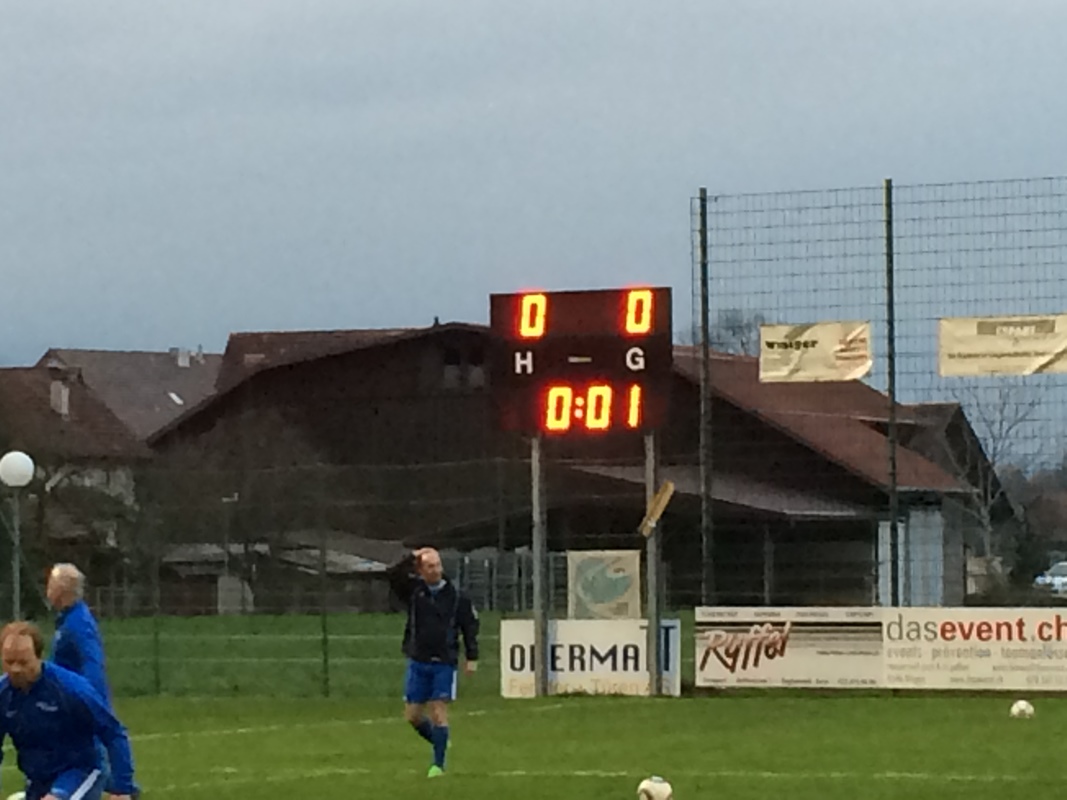 Immerhin hat es auf dem Hauptplatz des FC Wagen, das ist der verlängerte Teil der Kuhwiese, doch eine Viertelstunde gedauert, bis es "gschället het". Dies alles wurde von der nostalgische Matchuhr des FC Wagen minuziös genau dokumentiert, da spielt's auch keine Rollen, dass sie dem Geschehen ein wenig voraus war......