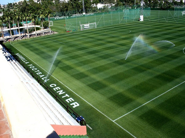 Trainiert wird auf den ultraschönen Rasen des MFC Marbella Football Centers.